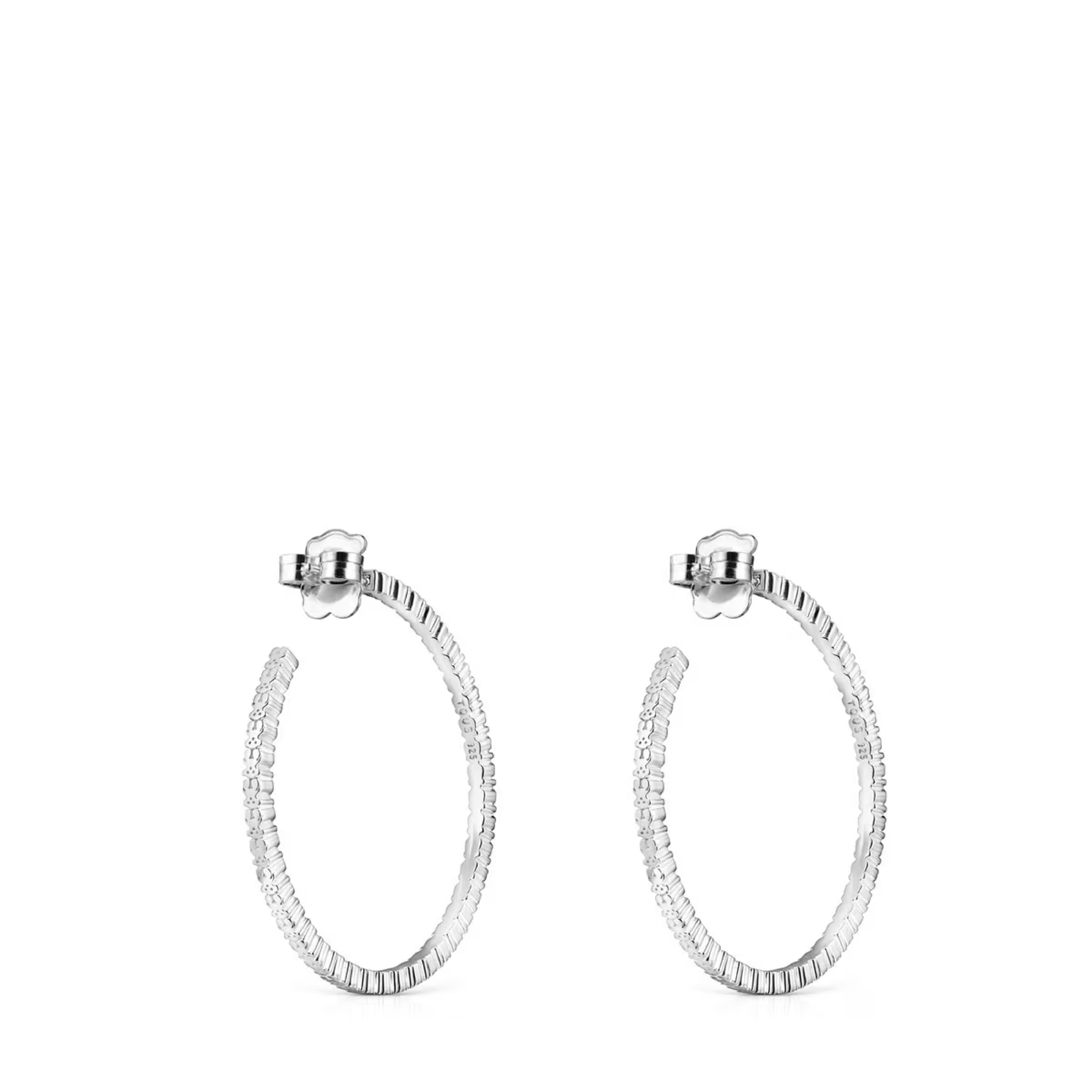 TOUS Straight disc hooped earrings in Sterling silver. Push back. Size: 4 cm.