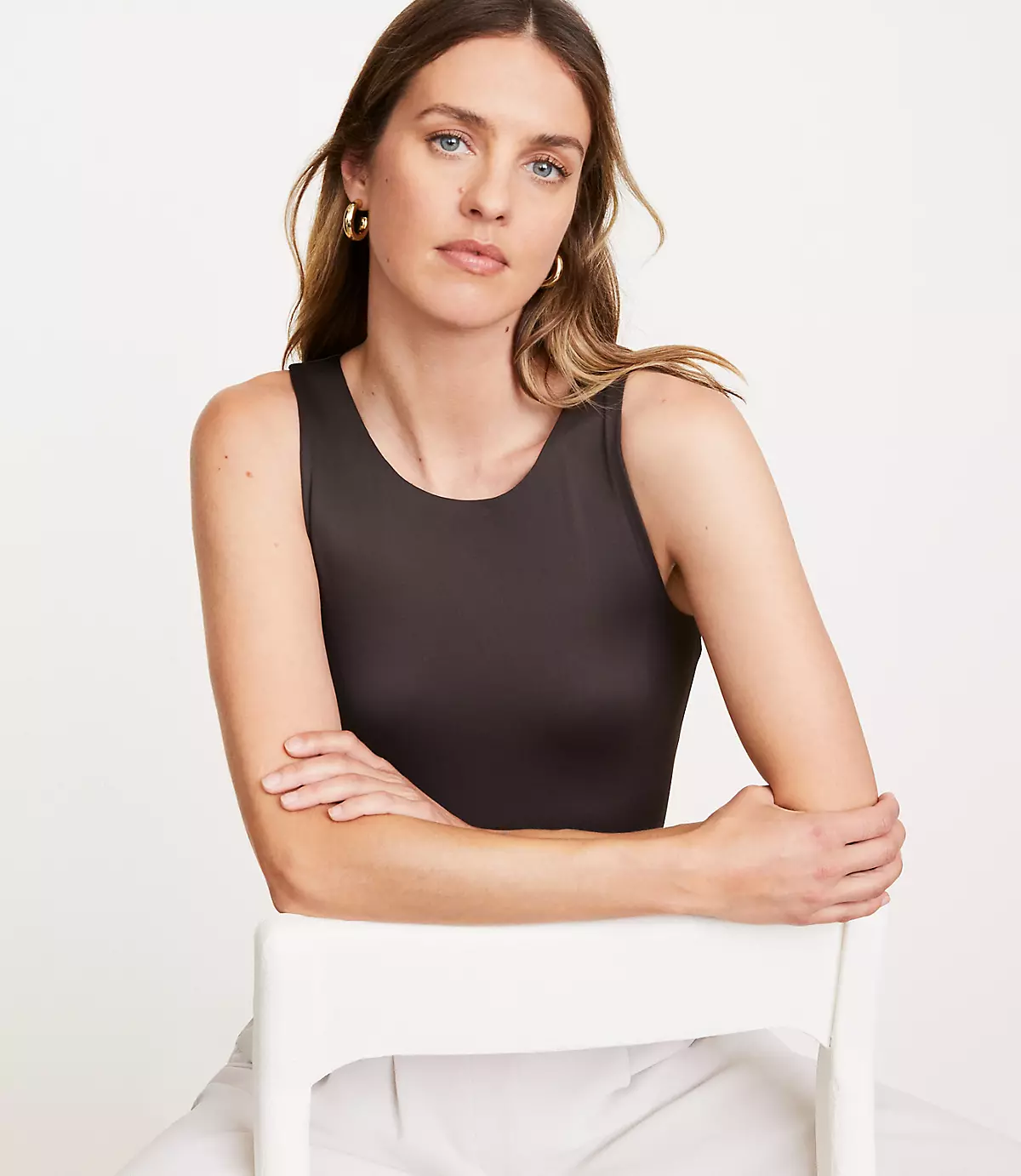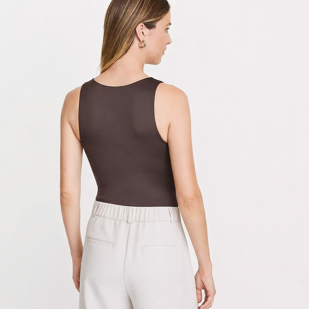 Designed in NYC and inspired by city living with its neutral, minimalistic palette, clean lines, tailored appeal and fabrics that encourage ease of movement. Level up your everyday. Form-fitting and sleek, our nylon spandex knit fabric is constructed to give a smoothing, flattering effect from every angle. P.S. Mix and match each piece for endless outfits. Crew neck. Sleeveless. Snaps at crotch.