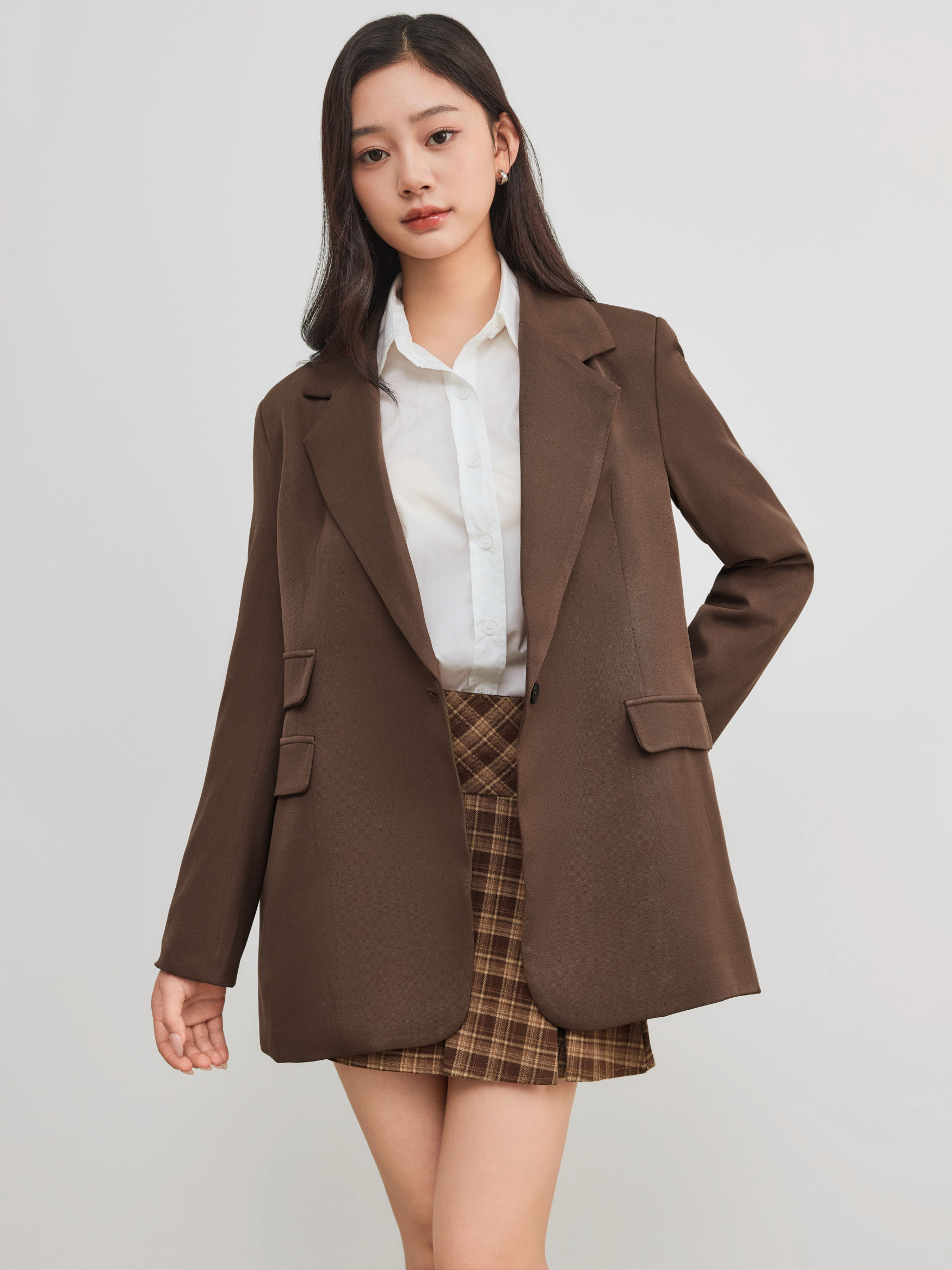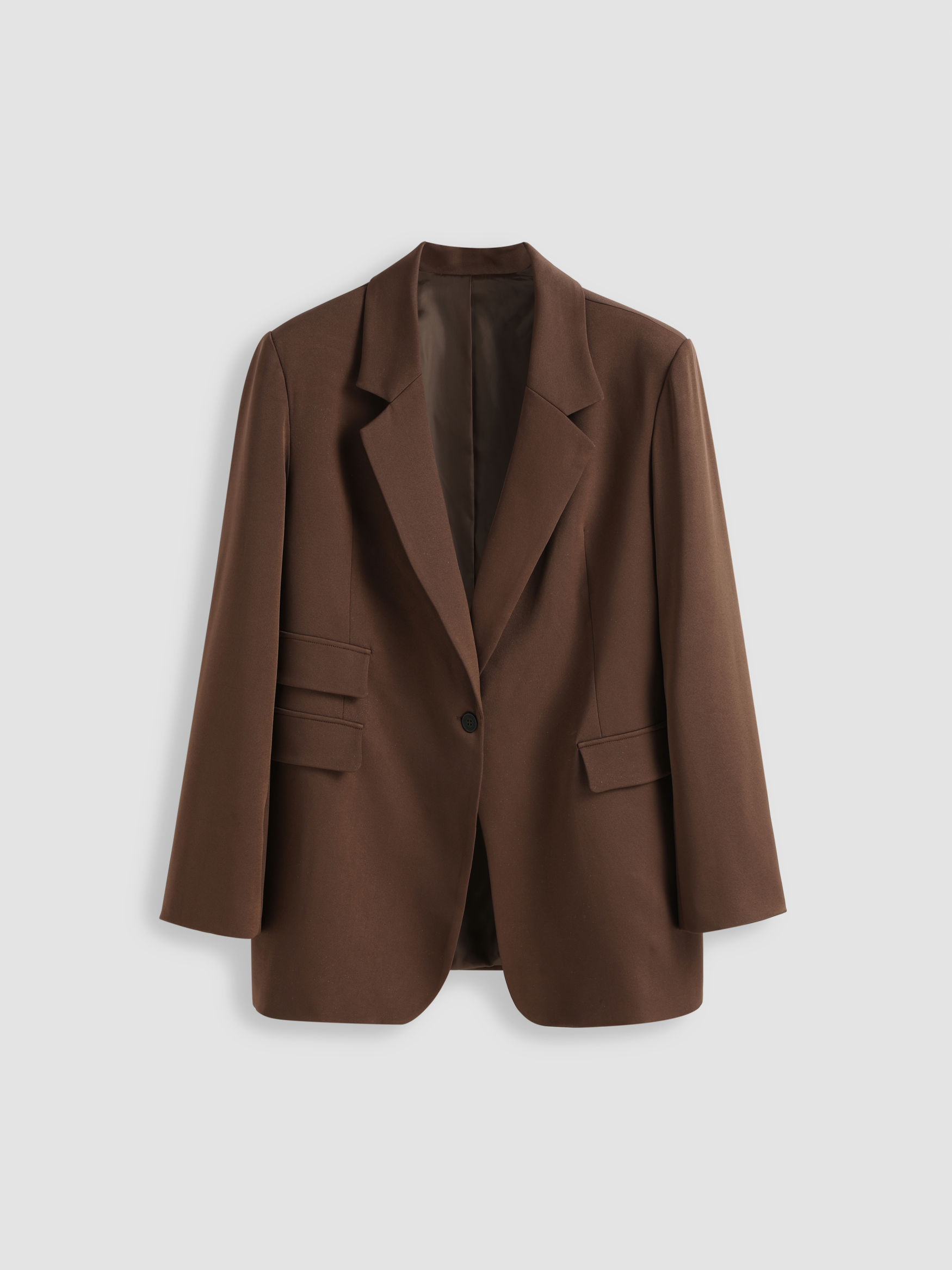 Our On The Move Oversized Blazer features a collared neckline with a single button up front and a structured, oversized fit. Perfect for dressing up or down, this chocolate brown blazer pairs great with your favorite matching workout set or floral maxi dress.