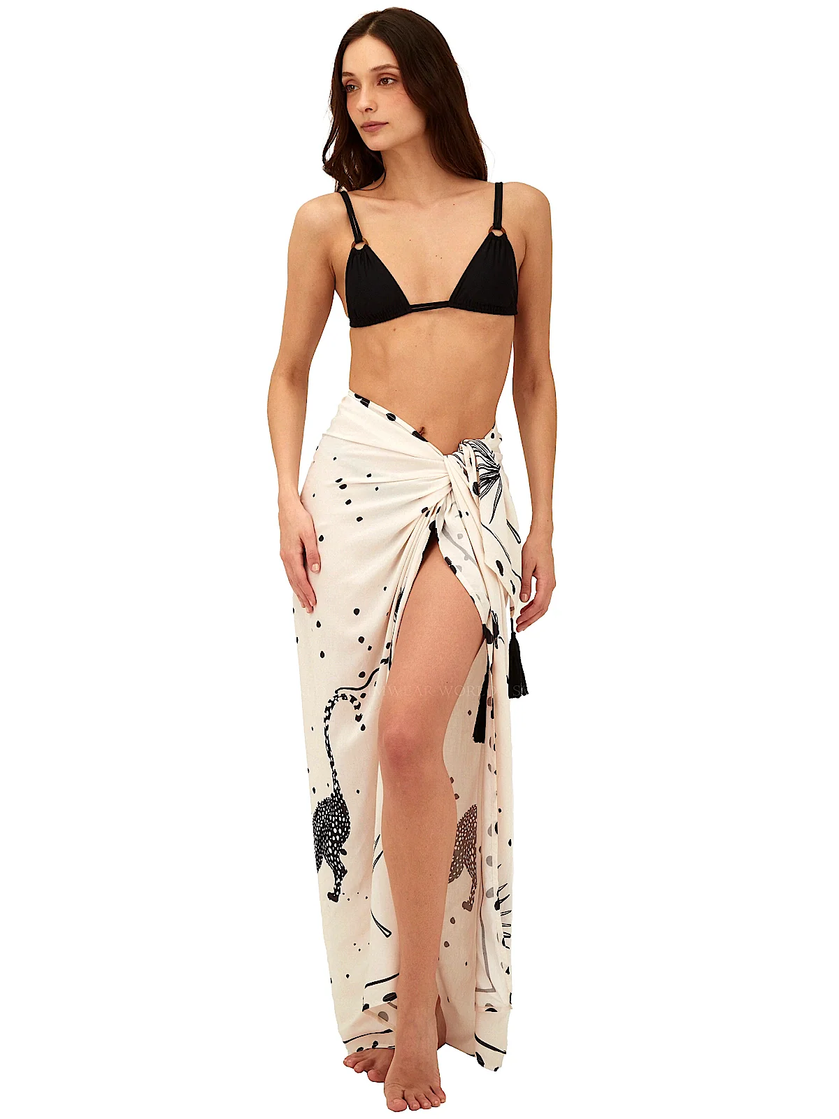 The Must Pareo is a timeless floor-length cover-up designed for effortless versatility. Crafted from a soft, airy fabric, it drapes beautifully and can be styled in multiple ways. Featuring tassel details at the corners and a bold graphic print, it adds a refined yet relaxed touch to any beach or resort ensemble.