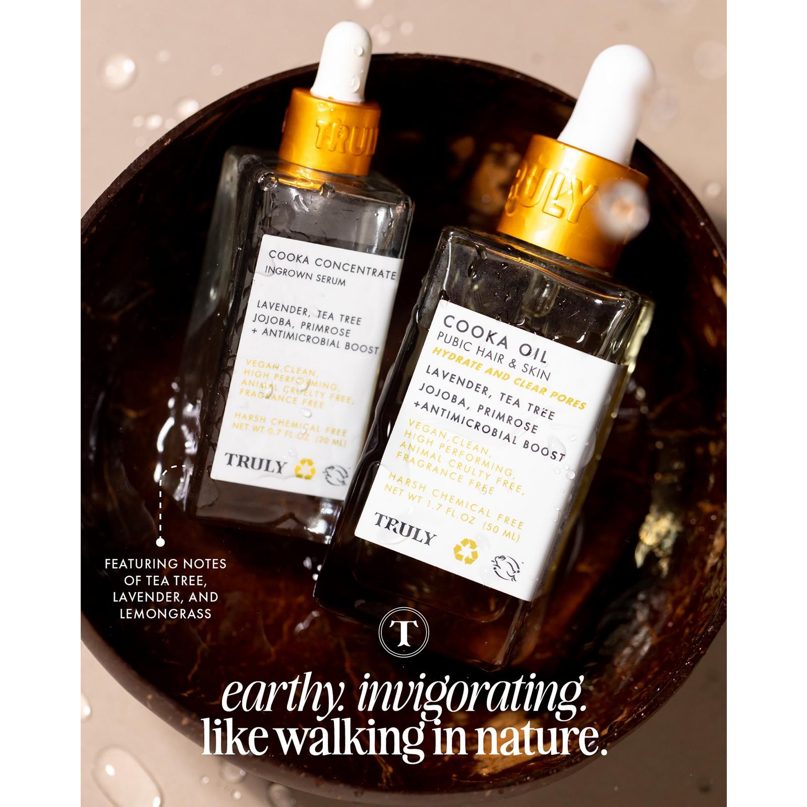 – Cooka Concentrate Ingrown Serum (0.7 oz.): a topical concentrate designed to relieve and prevent ingrown formation on the bikini line, pubic mound or any areas on the body prone to redness and irritation where hair meets skin