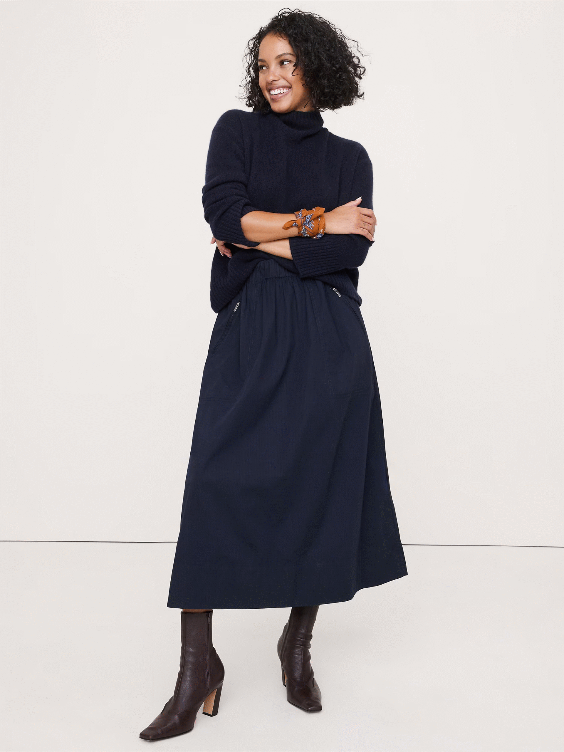 Stretch-Cotton Utility Midi Skirt Banana Republic (talla M)